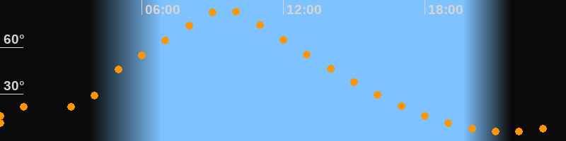 | Höchster Stand (Kulmination) | 09:31 Uhr (h = 84,7°) |