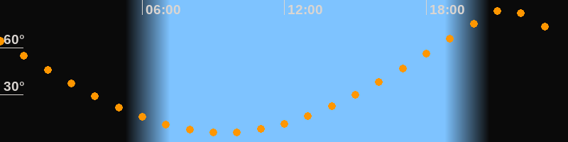 | Höchster Stand (Kulmination) | 21:24 Uhr (h = 84,7°) |