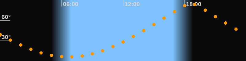 | Höchster Stand (Kulmination) | 18:38 Uhr (h = 84,7°) |