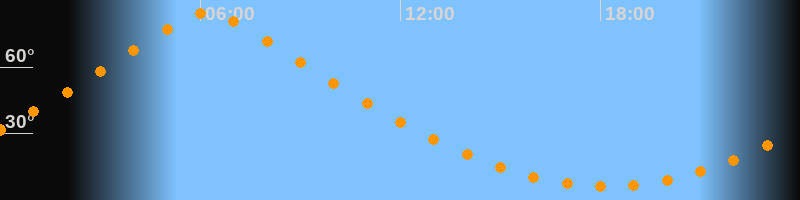 | Höchster Stand (Kulmination) | 06:13 Uhr (h = 84,7°) |