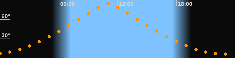 | Höchster Stand (Kulmination) | 11:00 Uhr (h = 84,7°) |