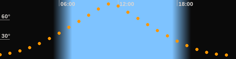 | Höchster Stand (Kulmination) | 11:14 Uhr (h = 84,7°) |