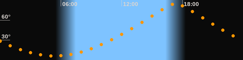 | Höchster Stand (Kulmination) | 17:21 Uhr (h = 84,7°) |