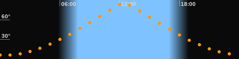 | Höchster Stand (Kulmination) | 12:26 Uhr (h = 84,7°) |