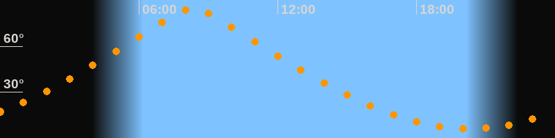 | Höchster Stand (Kulmination) | 08:19 Uhr (h = 84,7°) |