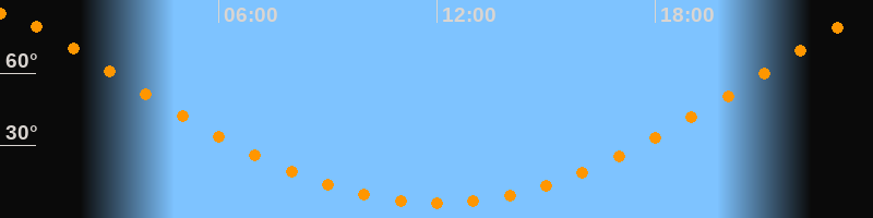 | Höchster Stand (Kulmination) | 00:00 Uhr (h = 84,7°) |