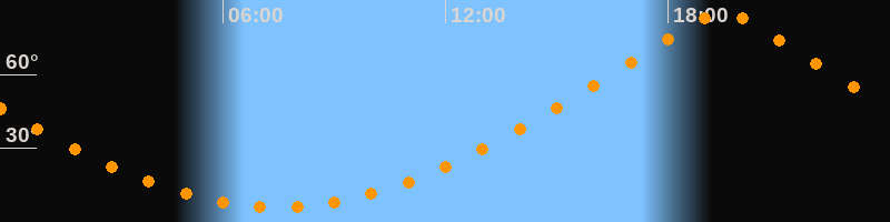 | Höchster Stand (Kulmination) | 19:28 Uhr (h = 84,7°) |