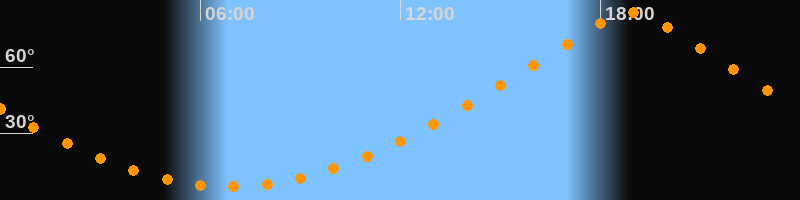 | Höchster Stand (Kulmination) | 18:53 Uhr (h = 84,7°) |