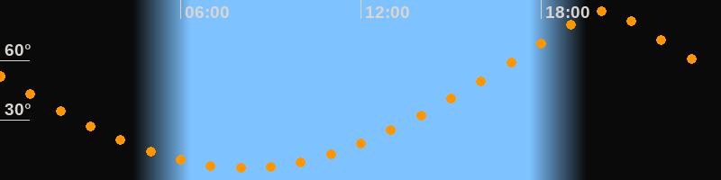 | Höchster Stand (Kulmination) | 20:06 Uhr (h = 84,7°) |