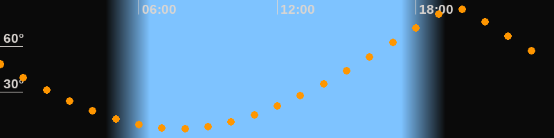 | Höchster Stand (Kulmination) | 19:42 Uhr (h = 84,7°) |