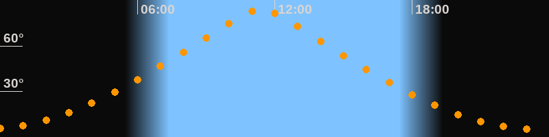 | Höchster Stand (Kulmination) | 11:23 Uhr (h = 83,9°) |