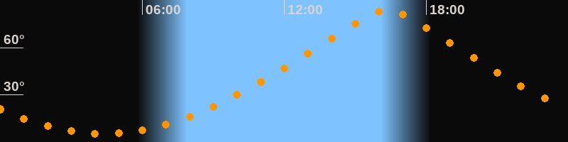 | Höchster Stand (Kulmination) | 16:20 Uhr (h = 83,9°) |