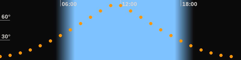 | Höchster Stand (Kulmination) | 11:29 Uhr (h = 83,9°) |