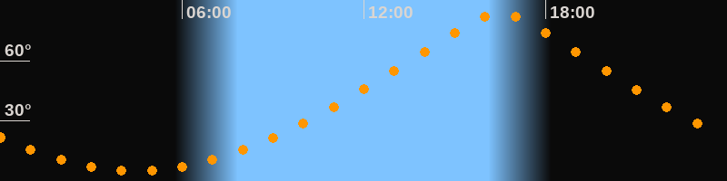 | Höchster Stand (Kulmination) | 16:29 Uhr (h = 83,9°) |