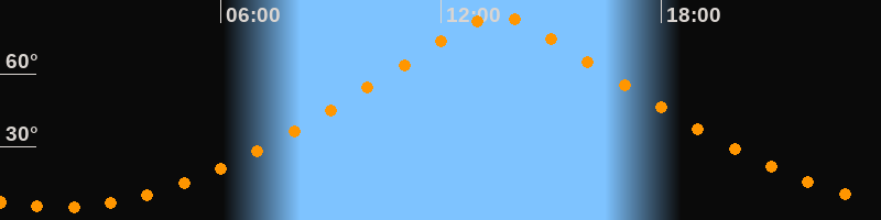 | Höchster Stand (Kulmination) | 13:33 Uhr (h = 83,9°) |