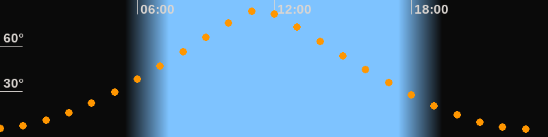 | Höchster Stand (Kulmination) | 11:21 Uhr (h = 83,9°) |