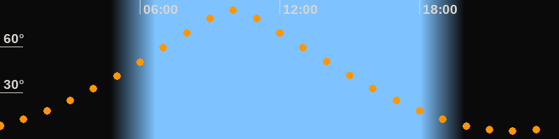 | Höchster Stand (Kulmination) | 10:00 Uhr (h = 83,9°) |