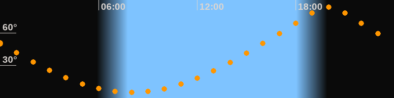 | Höchster Stand (Kulmination) | 19:59 Uhr (h = 83,9°) |