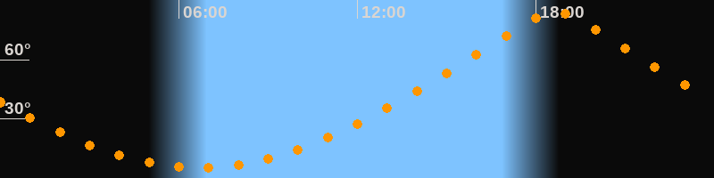 | Höchster Stand (Kulmination) | 18:40 Uhr (h = 83,9°) |