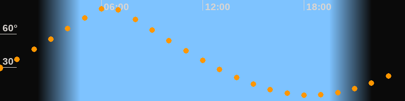 | Höchster Stand (Kulmination) | 06:25 Uhr (h = 83,9°) |