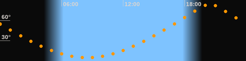 | Höchster Stand (Kulmination) | 20:28 Uhr (h = 83,9°) |
