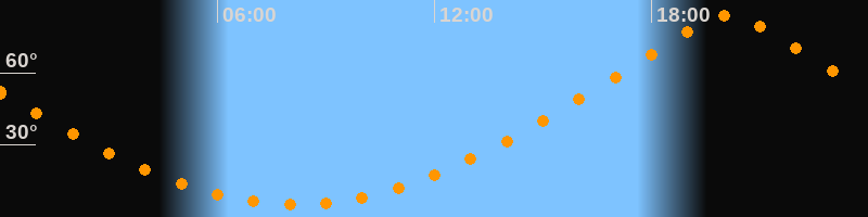 | Höchster Stand (Kulmination) | 20:08 Uhr (h = 83,9°) |