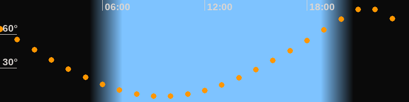 Höchster Stand (Kulmination)21:30 Uhr (h = 83,8°)