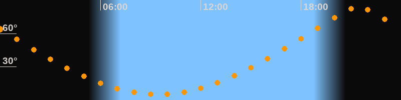 Höchster Stand (Kulmination)21:25 Uhr (h = 83,8°)
