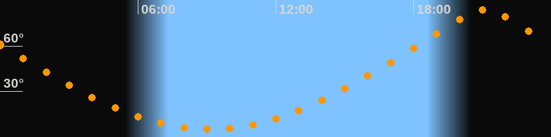Höchster Stand (Kulmination)21:05 Uhr (h = 83,8°)