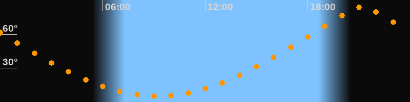 Höchster Stand (Kulmination)21:10 Uhr (h = 83,8°)