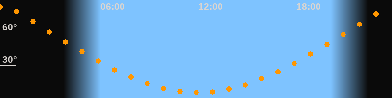 Höchster Stand (Kulmination)00:05 Uhr (h = 83,8°)
