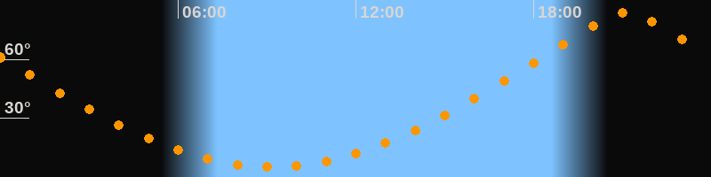 Höchster Stand (Kulmination)21:08 Uhr (h = 83,8°)