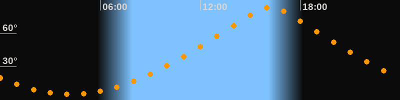 Höchster Stand (Kulmination)16:12 Uhr (h = 83,8°)