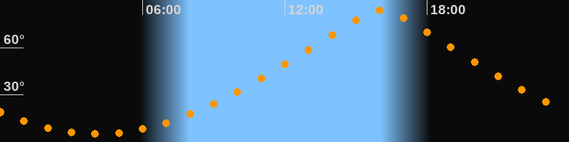 Höchster Stand (Kulmination)16:05 Uhr (h = 83,8°)