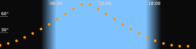 Höchster Stand (Kulmination)10:30 Uhr (h = 83,8°)