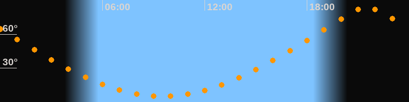 Höchster Stand (Kulmination)21:30 Uhr (h = 83,8°)