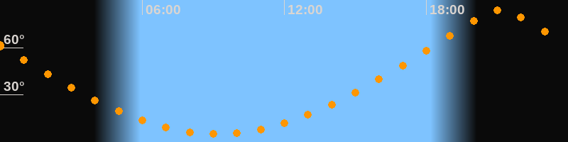 Höchster Stand (Kulmination)21:08 Uhr (h = 83,8°)