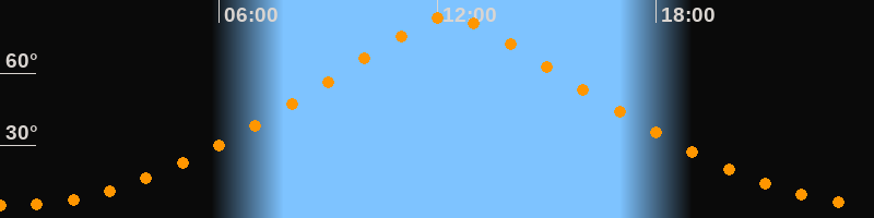 Höchster Stand (Kulmination)12:19 Uhr (h = 83,8°)