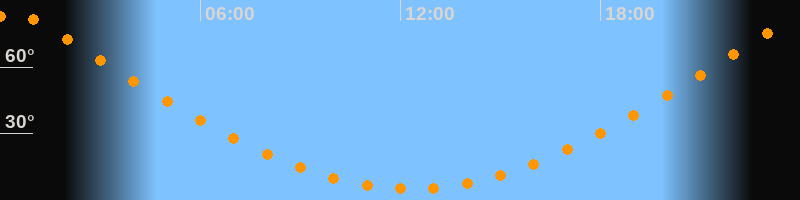 Höchster Stand (Kulmination)00:19 Uhr (h = 83,8°)