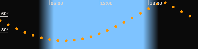 Höchster Stand (Kulmination)19:40 Uhr (h = 86,2°)