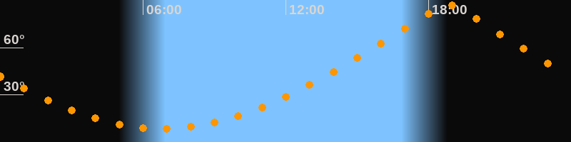 | Höchster Stand (Kulmination) | 18:49 Uhr (h = 87,1°) |