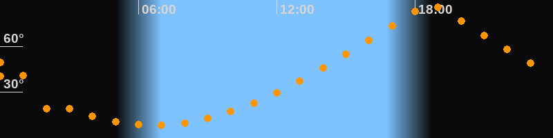 | Höchster Stand (Kulmination) | 18:40 Uhr (h = 87,1°) |