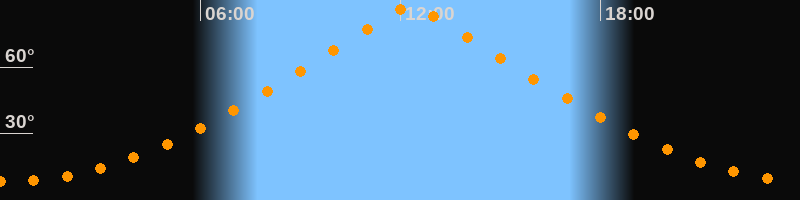 | Höchster Stand (Kulmination) | 12:18 Uhr (h = 87,1°) |
