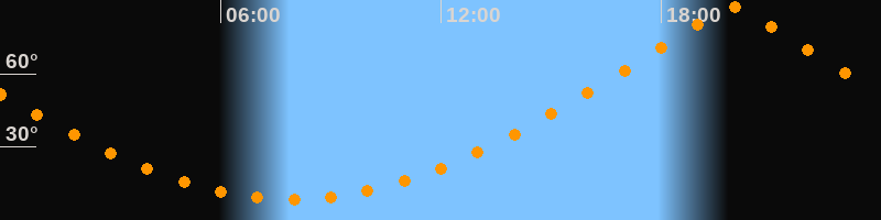 | Höchster Stand (Kulmination) | 19:56 Uhr (h = 87,1°) |