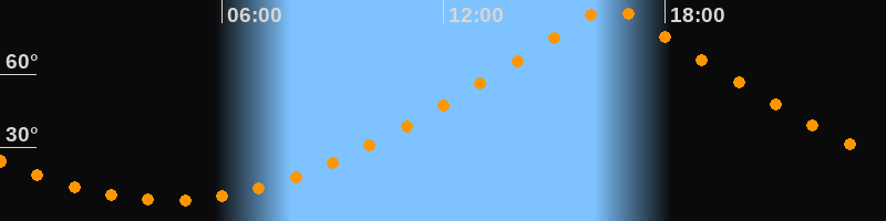 | Höchster Stand (Kulmination) | 16:31 Uhr (h = 87,1°) |