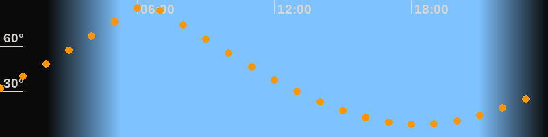 | Höchster Stand (Kulmination) | 06:23 Uhr (h = 87,1°) |