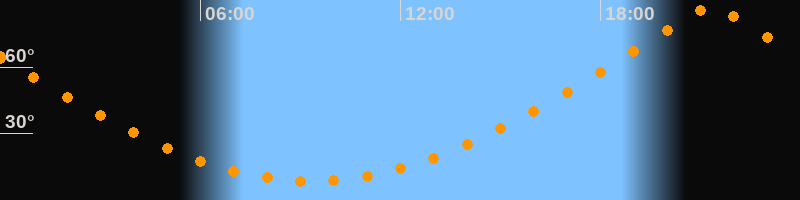 | Höchster Stand (Kulmination) | 21:20 Uhr (h = 87,1°) |