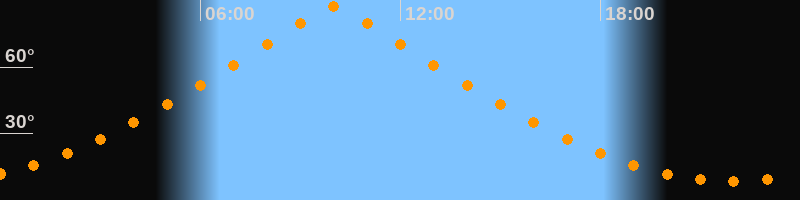 | Höchster Stand (Kulmination) | 10:00 Uhr (h = 87,1°) |