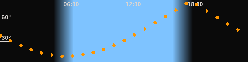 | Höchster Stand (Kulmination) | 18:25 Uhr (h = 87,1°) |