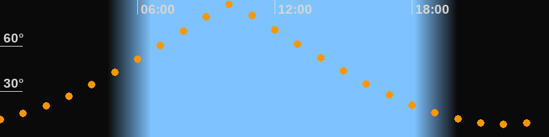 | Höchster Stand (Kulmination) | 10:03 Uhr (h = 87,1°) |
